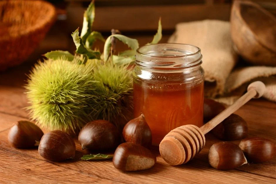 يستهلك عسل الكستناء كنوع لذيذ للغاية من العسل، ولكن له طعم مر قليلاً، ولون بني، وهو نوع خاص من العسل يسمى عسل الكستناء، وينتج من أزهار أشجار الكستناء.
