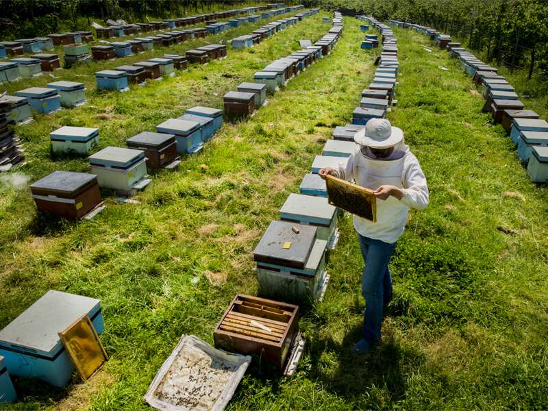 يجمع عسل الأزهار رحيق الأزهار المزروعة في منطقة النحل ويجمعها معًا في الخلية.