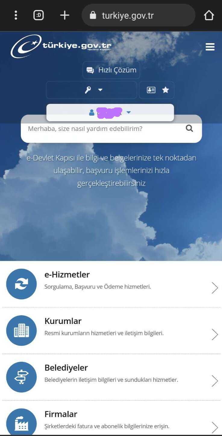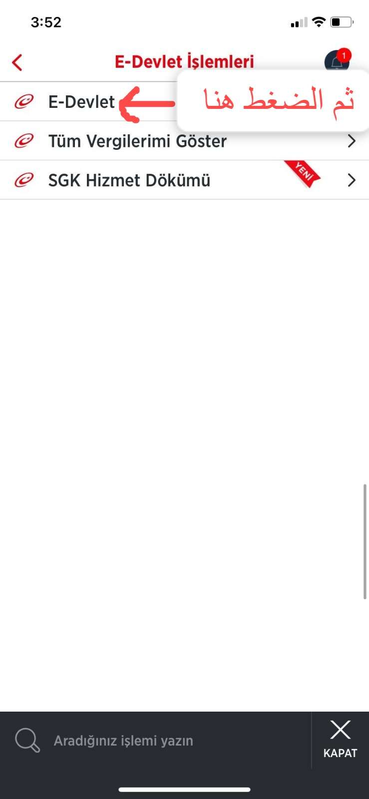 من ثم ستفتح لكم مجموعة خيارات لتقوموا باختيار “E-Devlet İşlemleri” كما هو موضح بالصورة.