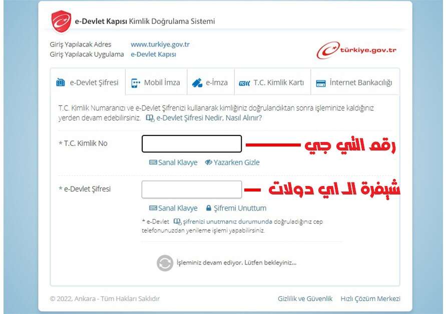 إذا نسيت شيفرة اي دولات E-Devlet الخاصة بك، يمكنك إعادة تعيين كلمة المرور بنفسك مجاناً عبر زر نسيت شيفرة اي دولات الخاصة بي (Şifremi Unuttum).
